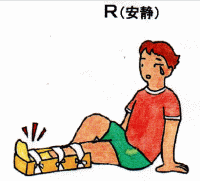 R 安静 木の板などでけがした部位を出来るだけ動かさないようにしましょう。